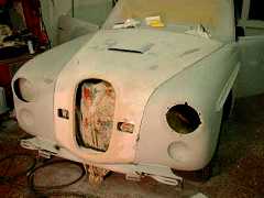 | Farina Jupiter E1 SA 109R is getting its top coat of paint, courtesy Pat Lockyer, the car's owner-restorer. | Mid to late January 2003 - Getting there...but lots of rubbing down still to do! |