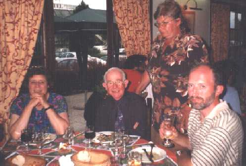 Copious refreshments at the Campanile, Amiens Glisy. The proprietors made us very welcome and indeed joined in the fun.